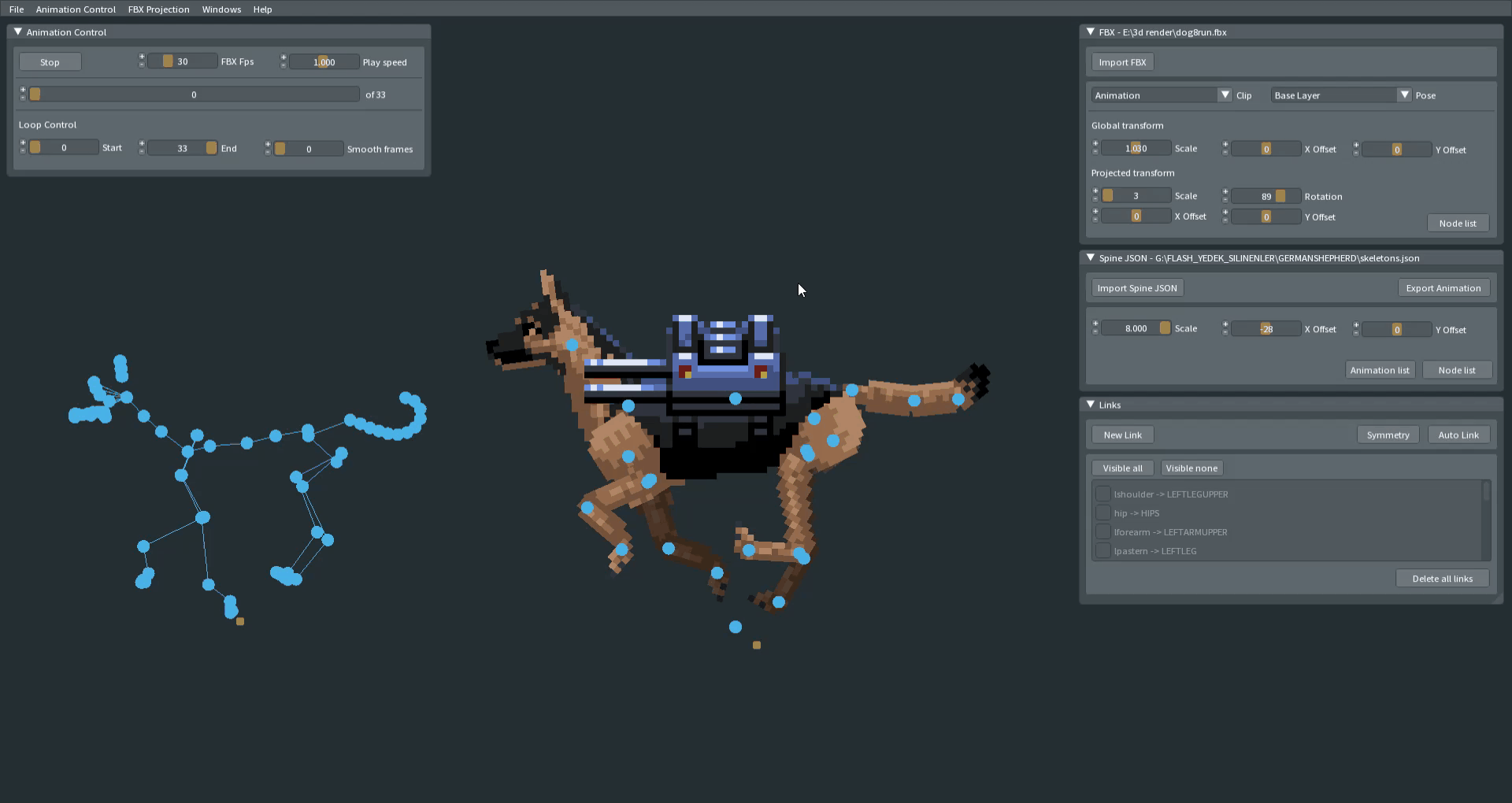 You can use 3D FBX Mocap files to make your Spine 2D animations easier. With this application, your animation work will be finished very quickly. You can also change or edit the animations you produce in Spine.